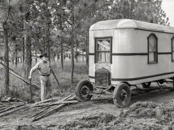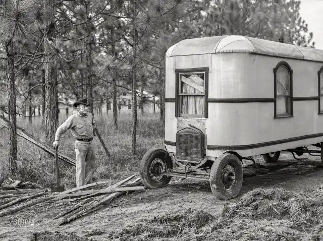 Трейлер строителя из Кэмп-Ливингстона, Александрия, Луизиана, декабрь 1940 года