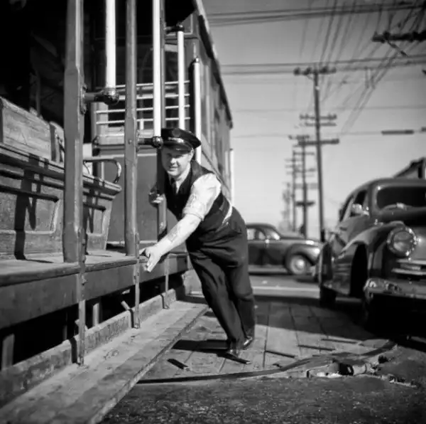 Канатный трамвай на поворотном круге, Сан-Франциско, 1950 год