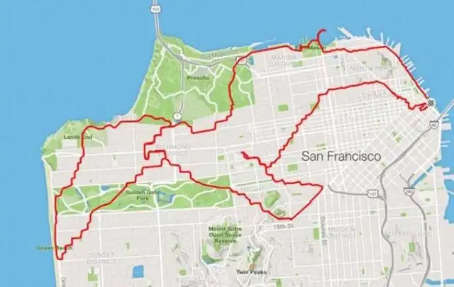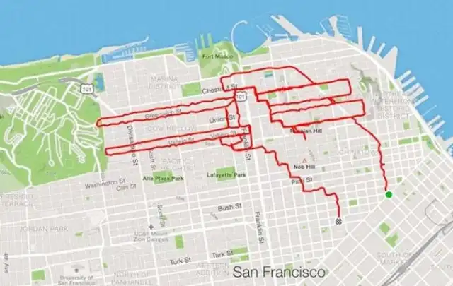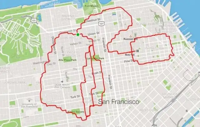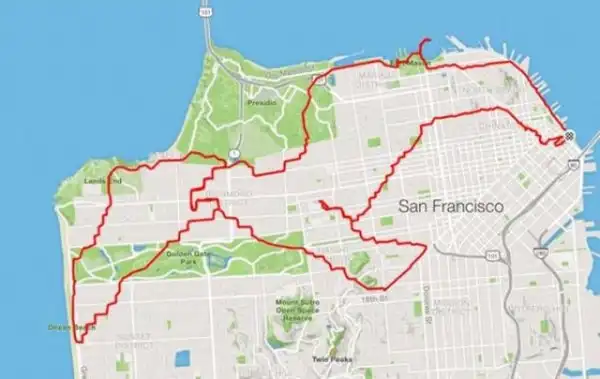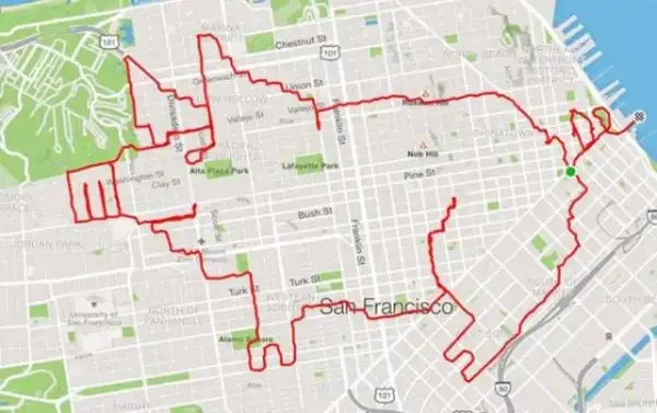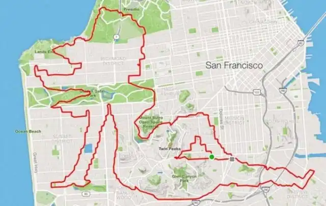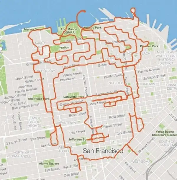 Что делать, если ты любишь пробежки по городу, да и в душе ты самый настоящий художник? Как все это совместить? Ленни Морган нашел выход. С помощью своего фитнес-трекера он "рисует" на картах Сан-Франциско, прокладывая путь своих тренировок. Получаются причудливые картины. И для здоровья полезно, и контент для блога появляется. В коллекции уже 53 рисунка.