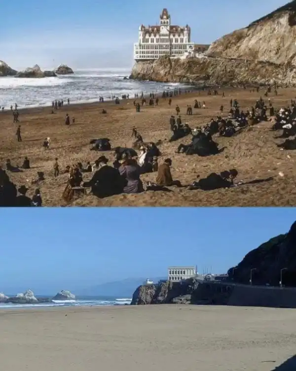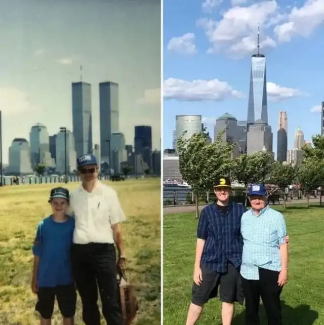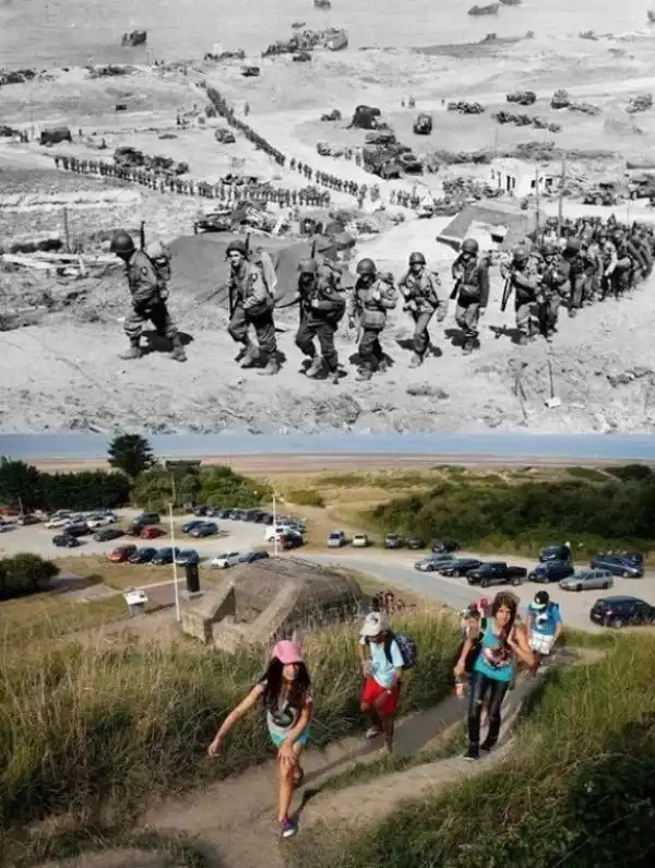 Старые фотографии разглядывать всегда любопытно, но куда интереснее, когда они представлены в таком формате. Люди соединяют локации старых снимков с современными фотографиями. Получается очень необычно и интересно. Наглядный пример того, что время может поменять многое.