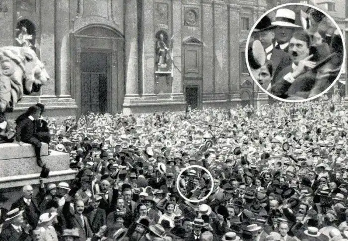 Адольф Гитлер, узнавший об объявлении Первой мировой войны. 1914 год.