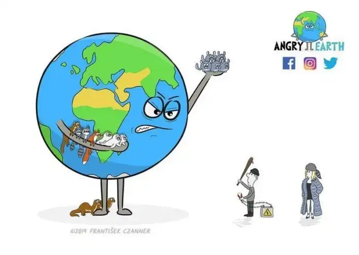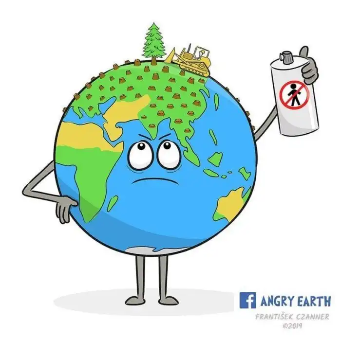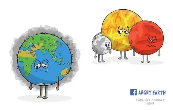 Именно поэтому художник рисует душераздирающие картинки, а-ля весёлые комиксы, которые совсем не веселят. На них главный персонаж работ Франтишека — планета Земля — как может отбивается от всевозможных человеческих подлостей. И она очень, ОЧЕНЬ недовольна нами.