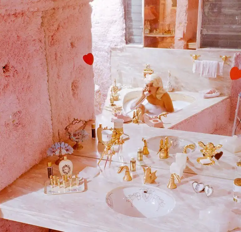 Актриса Джейн Мэнсфилд в своем «Розовом дворце», 1958 год, США