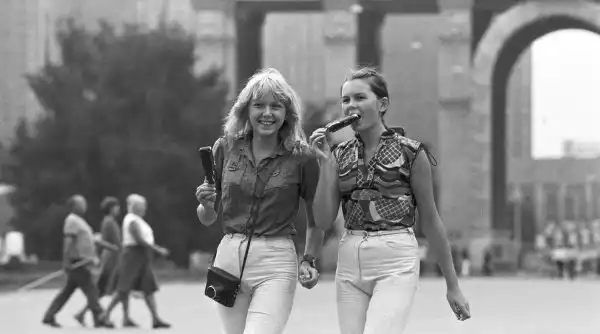 Девушки во время прогулки на ВДНХ, 1981 год, Москва