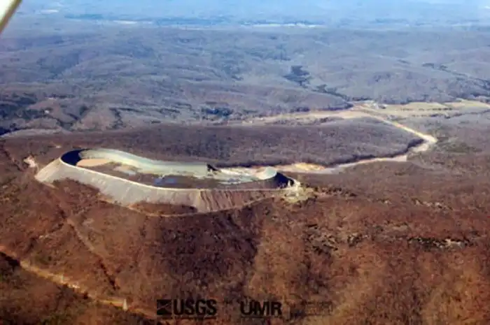 Гидроаккумулирующая электростанция по внешнему виду может быть неотличима от обычной ГЭС, стоящей на реке, а может представлять собой такой вот необычный резервуар, как станция Taum Sauk в Миссури. В любом случае – это большая территория и большие объёмы строительства.