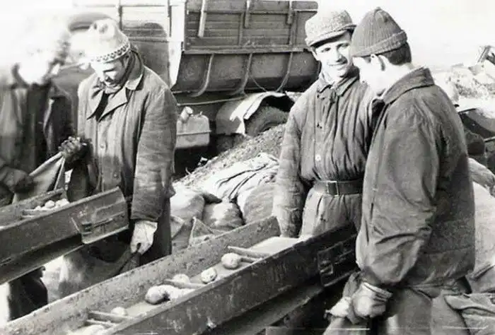 11. Пикник. Нет, это на самом деле не модный турслет или шашлыки с палатками. Скорее всего, эти ребята отдыхают после той самой картошки, на которую отправляли студентов и молодых специалистов. Одежда соответствует случаю.