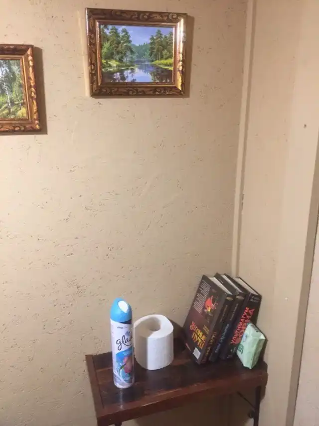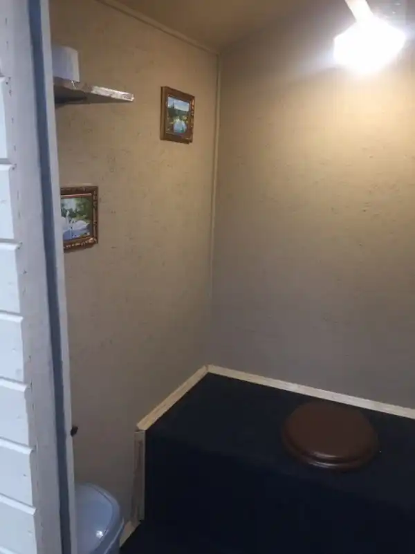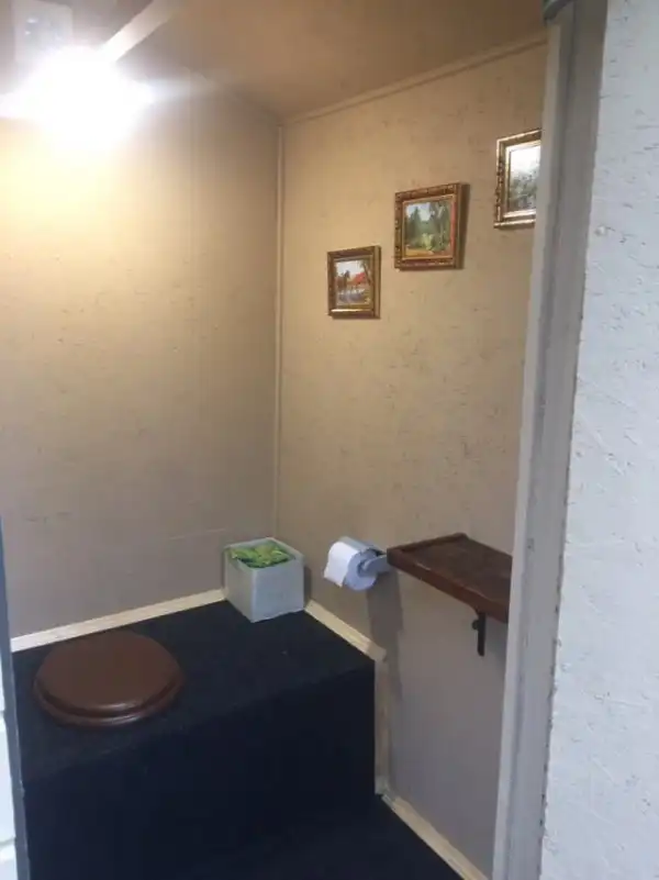 Этот пост точно по достоинству оценят все дачники, ведь такой уютный туалет не каждый может построить. Что тут еще добавить? Почти квартира-студия со всеми удобствами, только на даче.