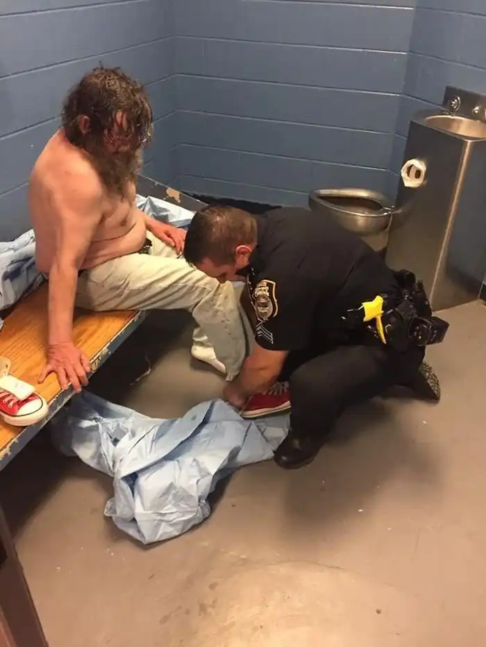 Полицейский из американского штата Нью-Йорк по имени Аарон Пейдж вместе своим напарником патрулировал улицы, когда к ним подошел бездомный. Мужчина сказал, что он очень хотел бы помыться, но ему негде это сделать. Аарон усадил бездомного в патрульный автомобиль и привез в полицейский участок.