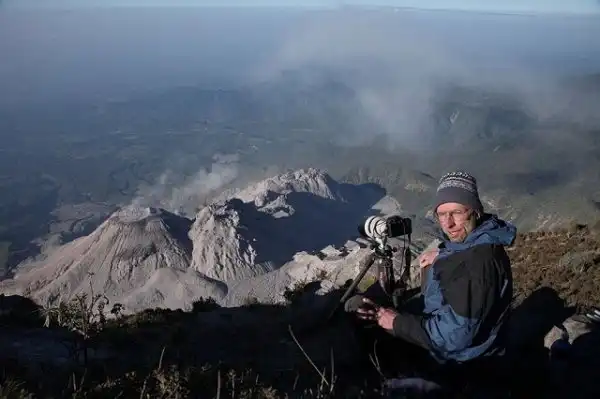 Мартин Рейтце, 55-летний фотограф и путешественник из Мюнхена. Он отправился на Сахалин, чтобы снять редкое и потрясающее чудо природы - вулканическую молнию. Мартин приехал к вулкану Эбеко в надежде запечатлеть "грязную грозу" и у него получилось сделать несколько удивительных кадров, которыми теперь любуется весь мир. Рейтце поведал, что он прождал порядка семи часов в ожидании извержения и ему улыбнулась удача. Мартин отметил, что вулкан начал извергаться, когда он стоял всего в паре километров от северного кратера.