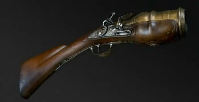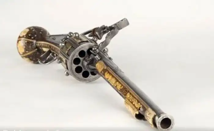 За 200 лет до изобретения Кольта этот револьвер имел барабан на 8 выстрелов калибра ~ .30.