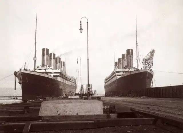 4. Недавно построенные лайнеры White Star Line "Титаник" и "Олимпик" в порту Белфаста, 1912 год