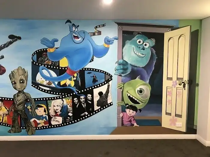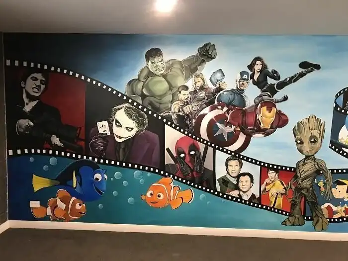 Киногерои на стене домашнего кинотеатра - может, не слишком оригинально, но всегда к месту!