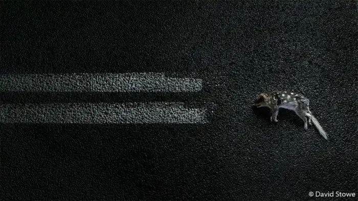 2-е место в категории "Наше влияние": "Конец линии". Крапчатая сумчатая куница (восточный кволл). Проселочная дорога + скорость x темнота = смерть животных. Остров Бруни, Тасмания. Автор: Дэвид Стоув