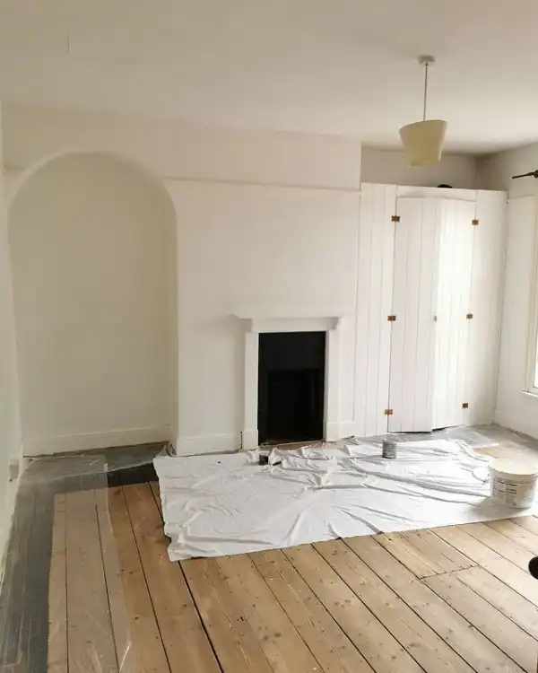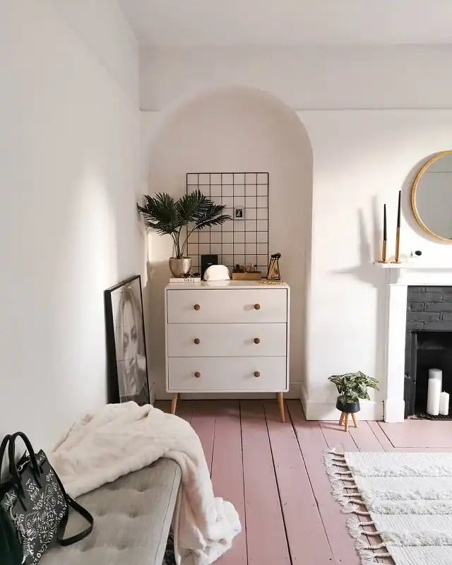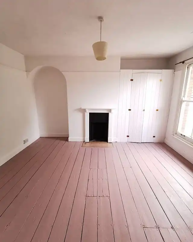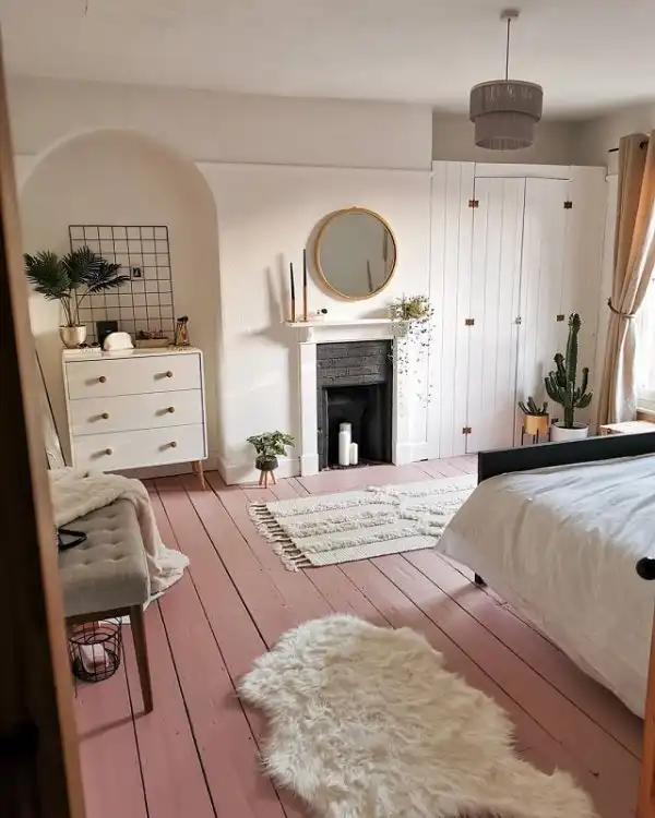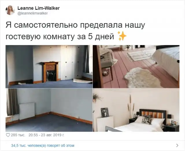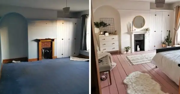 Девушка сняла напольное покрытие, затем сняла шторы и крючки на стенах, а потом приступила к покраске. Стены - в белый, пол - в розовый, камин - в черный. Следующим шагом стала сборка мебели. Многие предметы Линн покрасила самостоятельно: кровать, тумбочки и элементы декора. А в конце девушка доделала финальные штрихи.
