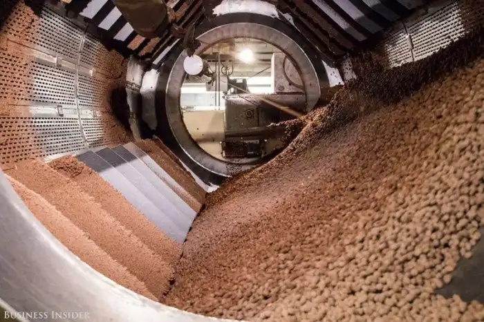 Для M&M’s с арахисом орехи, которые привозят в Хакеттстаун в основном с юго-востока США, сначала обжариваются. Затем их поливают шоколадом в три слоя, чтобы добиться нужного соотношения.