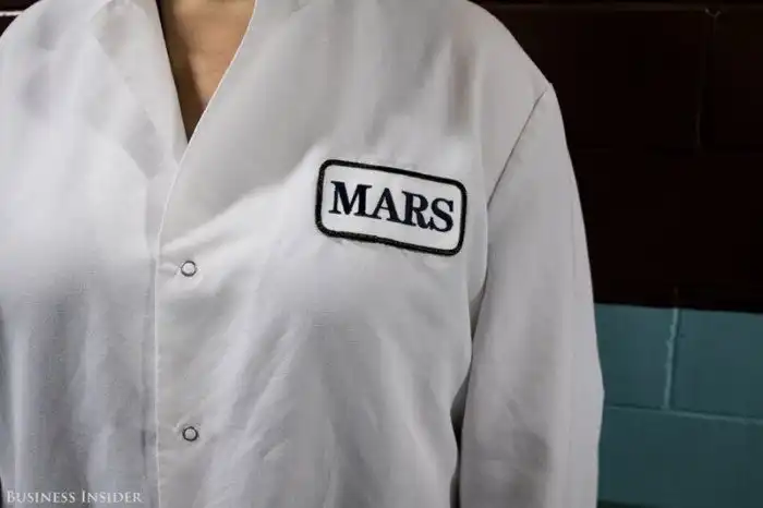 Когда заходишь на фабрику, тебя просят снять все украшения. Зачем сотрудница проверяет ногти посетителей на предмет наличия лака. Это делается для того, чтобы сколотый лак не попал в конфеты. Тех, у кого ногти накрашены, просят надеть перчатки. Кроме того, посетителям выдают лабораторные халаты с надписью «Mars», как у всех сотрудников.