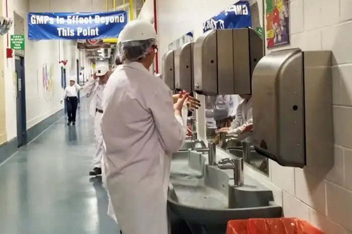 Перед тем как войти в цеха, посетители обязательно моют руки, даже если они в перчатках.
