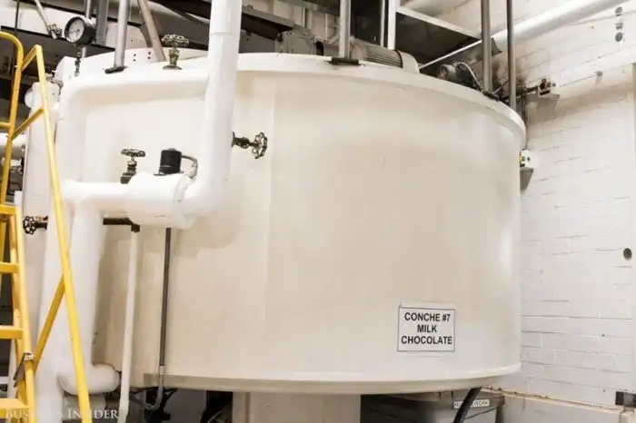 «Смешать и размягчить шоколад очень важно», — рассказывает Эида, сотрудница фабрики. Конширование — первый этап процесса, когда все ингредиенты шоколада смешиваются.