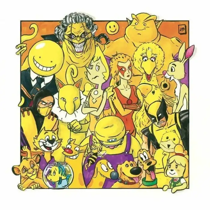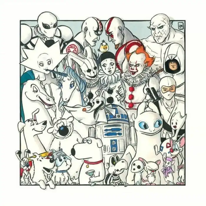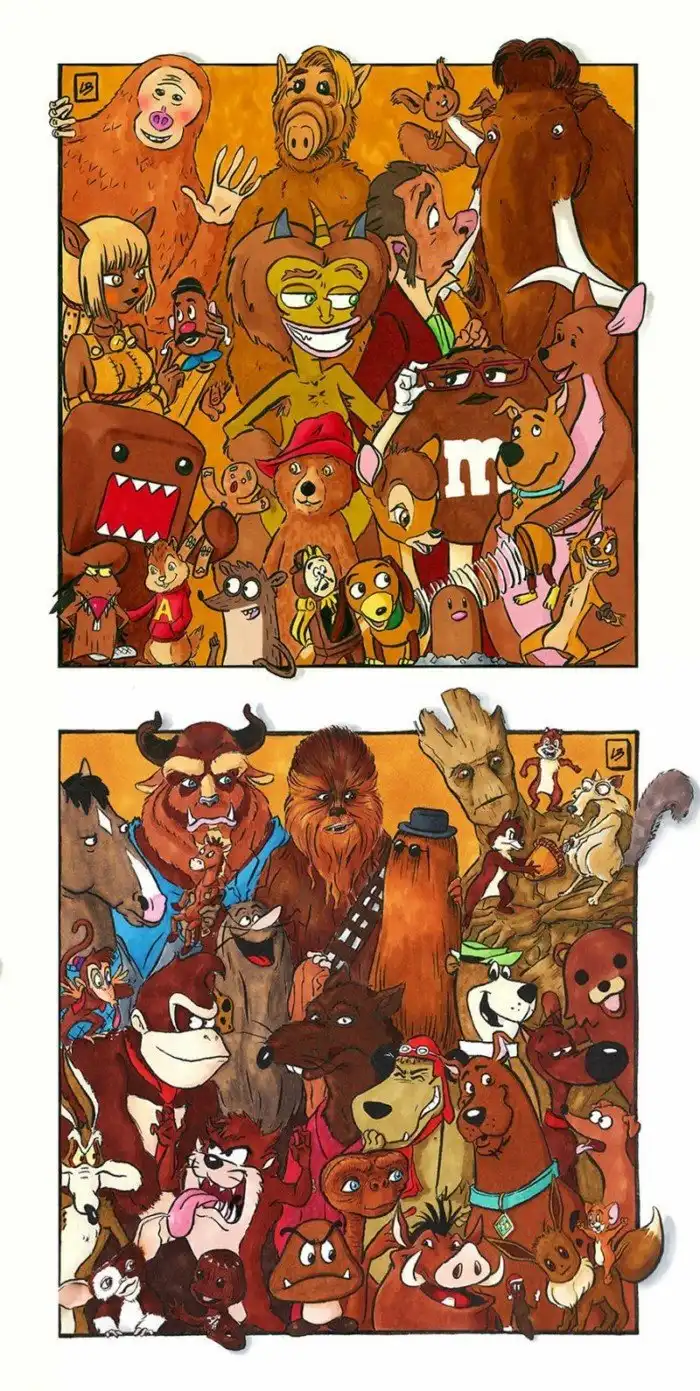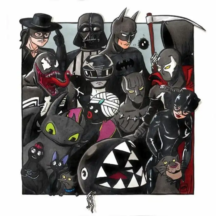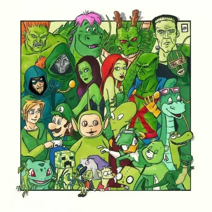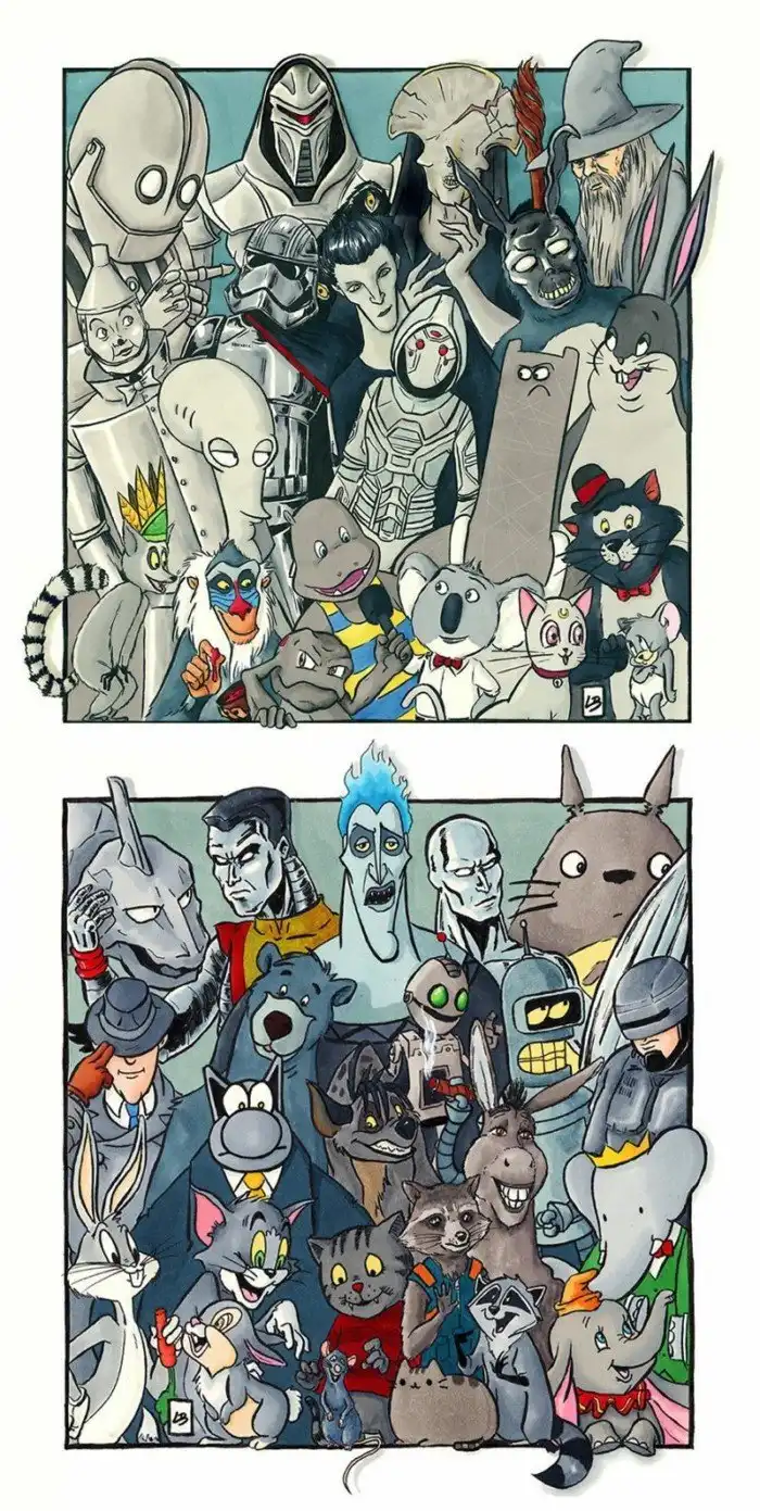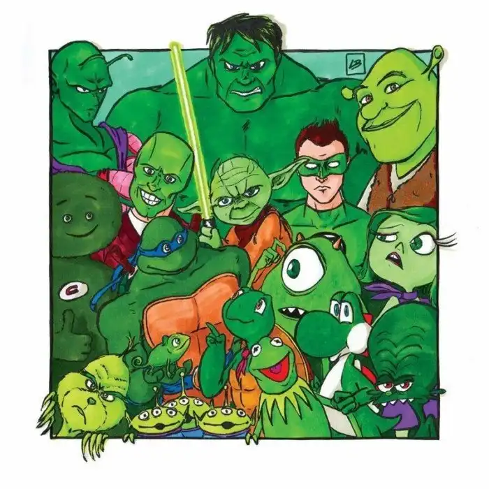 У художницы Линды Будербалы - необычное хобби: она старается подружить друг с другом кино- и мультипликационных персонажей. которые никогда не пересекались ни в книгах, ни на экране. На каком же основании она делит персонажей на команды? Исключительно на основе цвета. Линда создает все новые цветные коалиции киногероев - и представляет их публике.