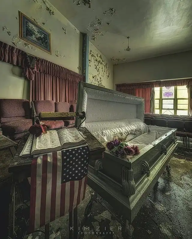 Американский фотограф из Нью-Джерси Ким Зир специализируется на свадебных и праздничных фотосессиях. Следовательно, все его работы - это яркие и радостные снимки, на которых запечатлены самые счастливые моменты в жизни в людей. Но порой Ким снимает совсем невеселые снимки. Фотограф отправляется в разные заброшенные места страны и делает атмосферные и немного зловещие кадры. У него мастерски получается передавать мрачную эстетику этих мест.