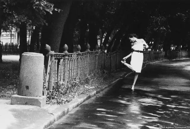 Модель позирует в Москве на Страстном бульваре для фото с названием «Страстный бульвар», 1991 год.