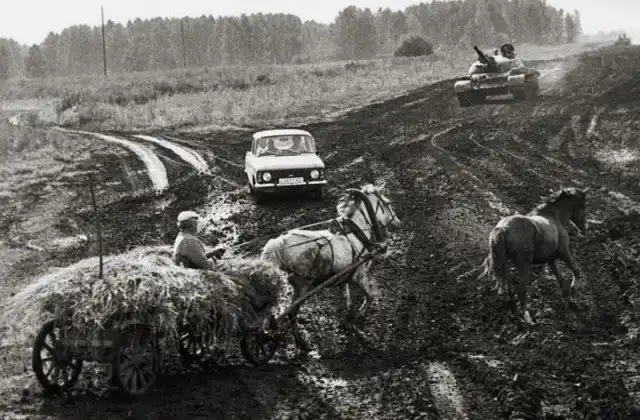 Российские перекрестки в 1991 году.