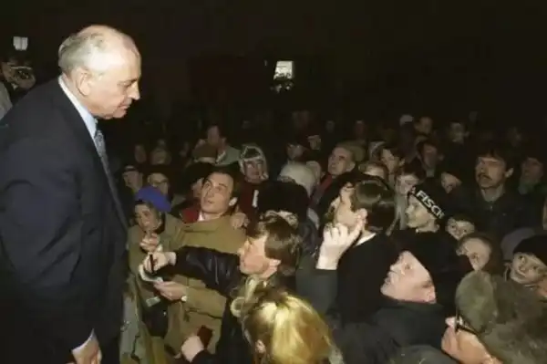 Встреча Горбачева с избирателями во время избирательной кампании 1996 года. На тех выборах он получил 0,5% голосов