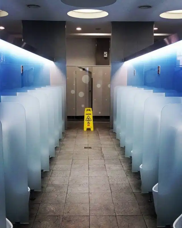 Писсуары в общественных туалетах отгорожены друг от друга перегородками.