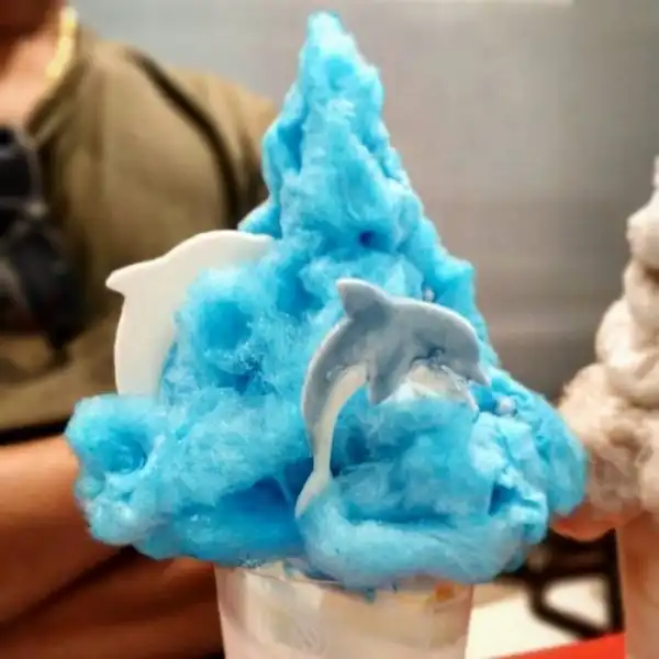Сладкая вата подается в стаканчиках со съедобными декоративными элементами.