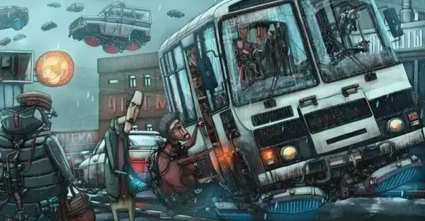 Сергей любит рисовать Россию, используя элементы различных стилистик, в первую очередь, киберпанка, и множество образов популярной культуры, например, отсылки к фильмам «Чужой», «Звёздный путь» и «Интерстеллар». С помощью своей методики художественной передачи действительности Сергей изображает страну немного мрачной, немного загадочной, но всё же довольно узнаваемой, давая возможность зрителям представить предысторию и последствия показанных ситуаций.