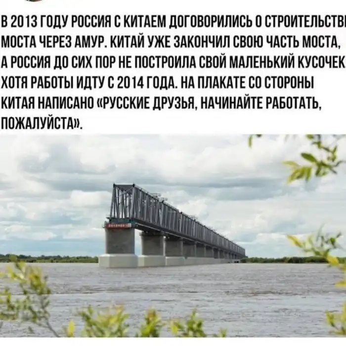 Его уже построили и небольшая задержка с российской стороны никакими плакатами от китайцев не критиковалась.