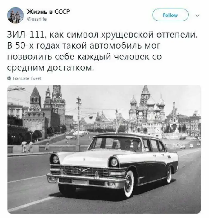 112 экземпляров - ровно столько было выпущено ЗИЛ-111, который делали на основе машин представительского класса - Buick, Lincoln и Cadillac. И что же это за средний класс, владеющий таким автомобилем?