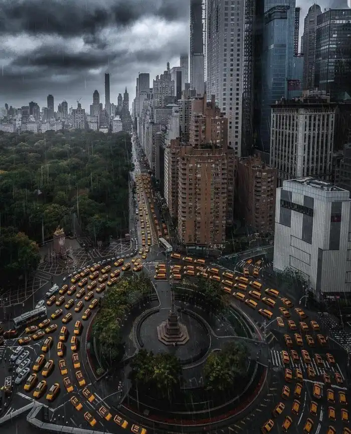 Sarah Beth Moses, New York in 2019. Это фотошоп. На самом деле на оригинальном фото не более 4-5 автомобилей такси