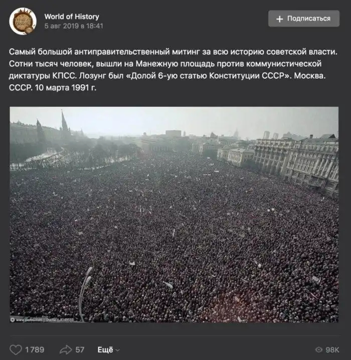 6 статья Конституции к 1991 году уже была отменена и этот митинг в поддержку отставки Горбачева