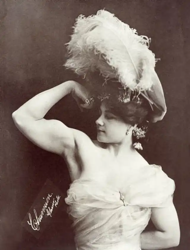 4. Чармион - первая женщина-бодибилдер в США. Выступала в водевилях и развлекала публику поднятием тяжестей, 1897 год