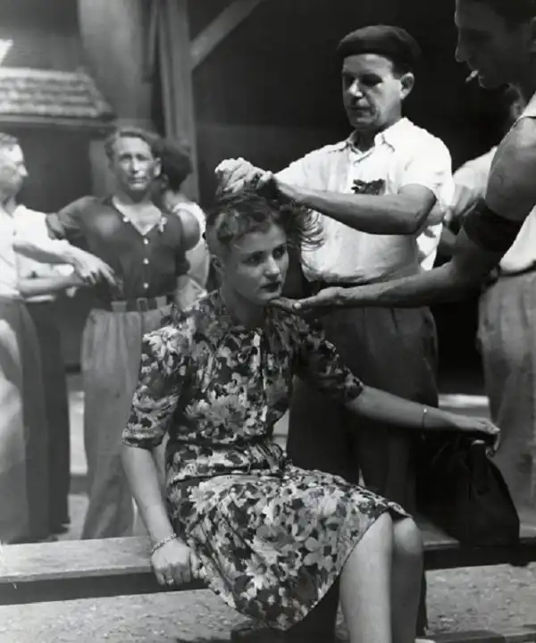 21. Французские мужчины бреют наголо девушку, которая была замечена в романтических связях с немцами, 1944 год