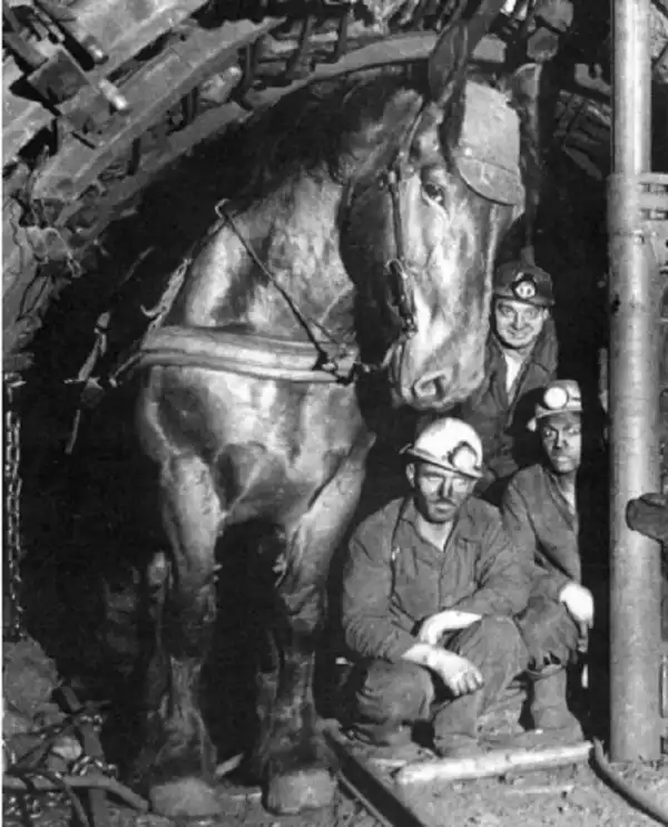 23. Французские шахтеры спускались под землю вместе с ломовыми лошадьми, 1940-е