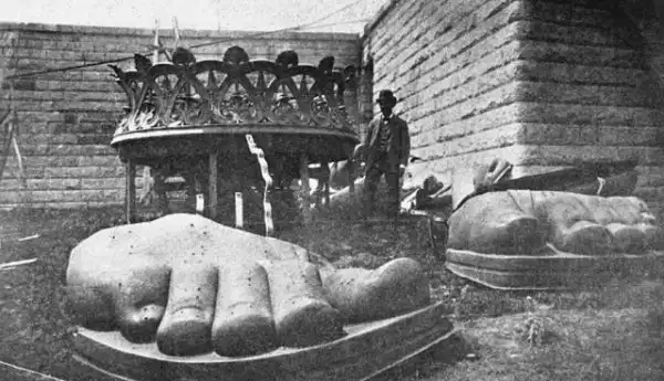 8. Пальцы ног и основание факела статуи Свободы за несколько часов до установки на постамент, 1900 год