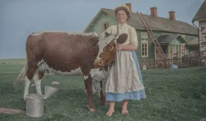Переработка льна в деревне Пёртом в Остроботнии (шведоязычная область в Финляндии), 1912 г.