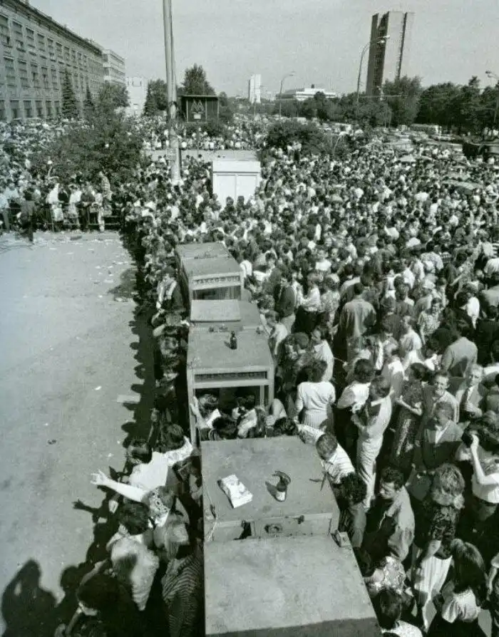 Очередь за мылом, снятая от «ильичёвского» магазина в мае 1989 года.