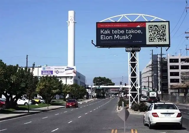 На билборде латинскими буквами написали всеми известную мем-фразу: "Как тебе такое, Илон Маск?" Призыв сопроводили QR-кодом, который, по замыслу организаторов, перенаправит читателя сообщения на сайт, где помимо фотографий самого Илона можно посмотреть ролик, посвященный его приезду на форум. Также специально для изобретателя поставили большую кнопку: "Да, я поеду".