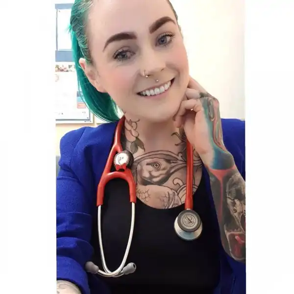 Согласитесь, первая ассоциация с врачом – это белый халат и стетоскоп. Но Сара Грей из Австралии хочет сломать этот стереотип. Девушка известна как самый татуированный врач в мире. Ее кожа покрыта краской почти с головы до ног.