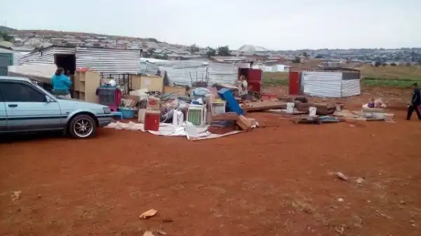 Построенный на месте бывшей свалки, вонючий лагерь приютил семьи с маленькими детьми, которые родились после окончания апартеида в 1994 году. Ряды лачуг из дерева и гофрированного металла выстроились вдоль пыльной пустоши, которую скваттеры называют домом.