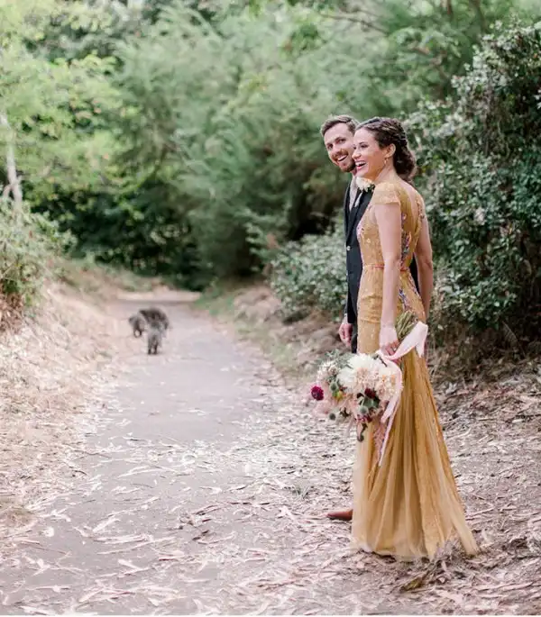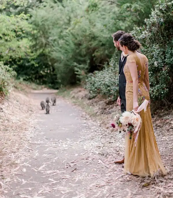 Неожиданностью закончилась свадебная фотосессия молодоженов Сары и Зака в Сан-Франциско. Пара фотографировалась в парке Golden Gate, как вдруг к ним вышла семья енотов.