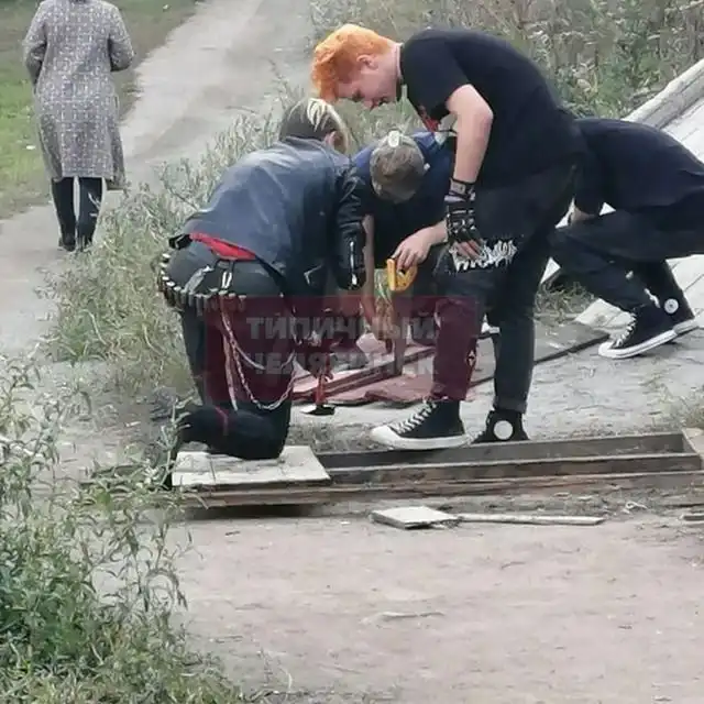 "Вчера увидели с друзьями пост о сломанной горке во дворе по улице Островского и путем переговоров нашей панк-тусовки решили единогласно, что надо чинить", — написали они.