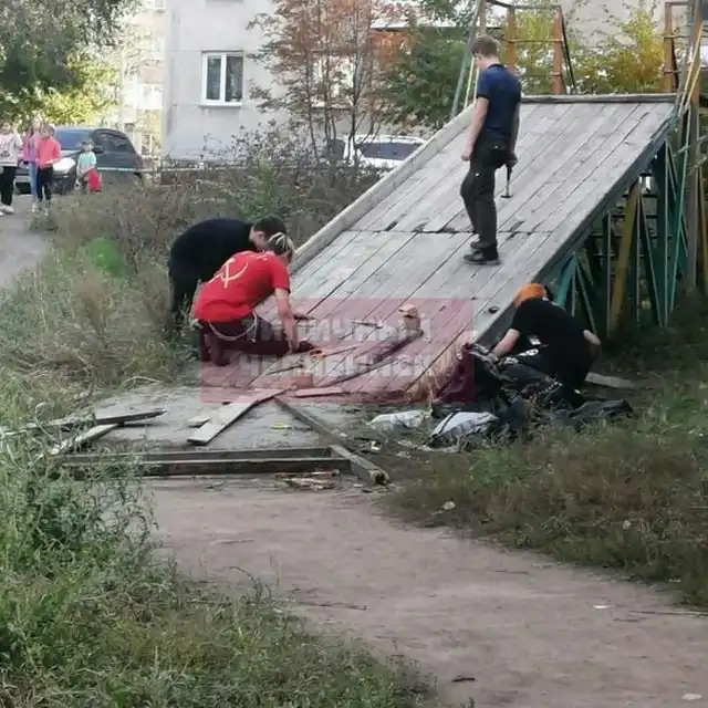 "Доски сгнили, как детям кататься зимой непонятно, на общую горку ездить нет время и самое главное - очень травмоопасно! А тут дети под присмотром. Куда обращаться - мы не знаем, такая большая площадь и нет нормальной детской площадки, горка одна радость детям зимой", - написала местная жительница Елена Сехина в соцсети.