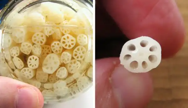 Это корень лотоса. Его едят жареным, вареным и маринованным, но приготовить обязательно нужно правильно. Иначе он станет ядовитым.