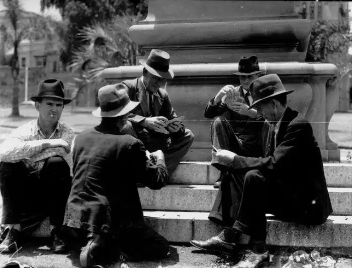 13. 1942 год. Мужчины прыгают на лыжах с трамплина в горах Нового Южного Уэльса, Австралия