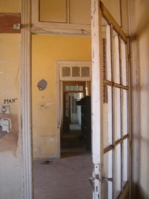 В плоском здании всего по две квартиры на каждом этаже. Дом служил борделем, а затем стал приютом для беженцев. Снос ему вряд ли грозит - на таком мизерном участке вряд ли можно построить что-то другое.