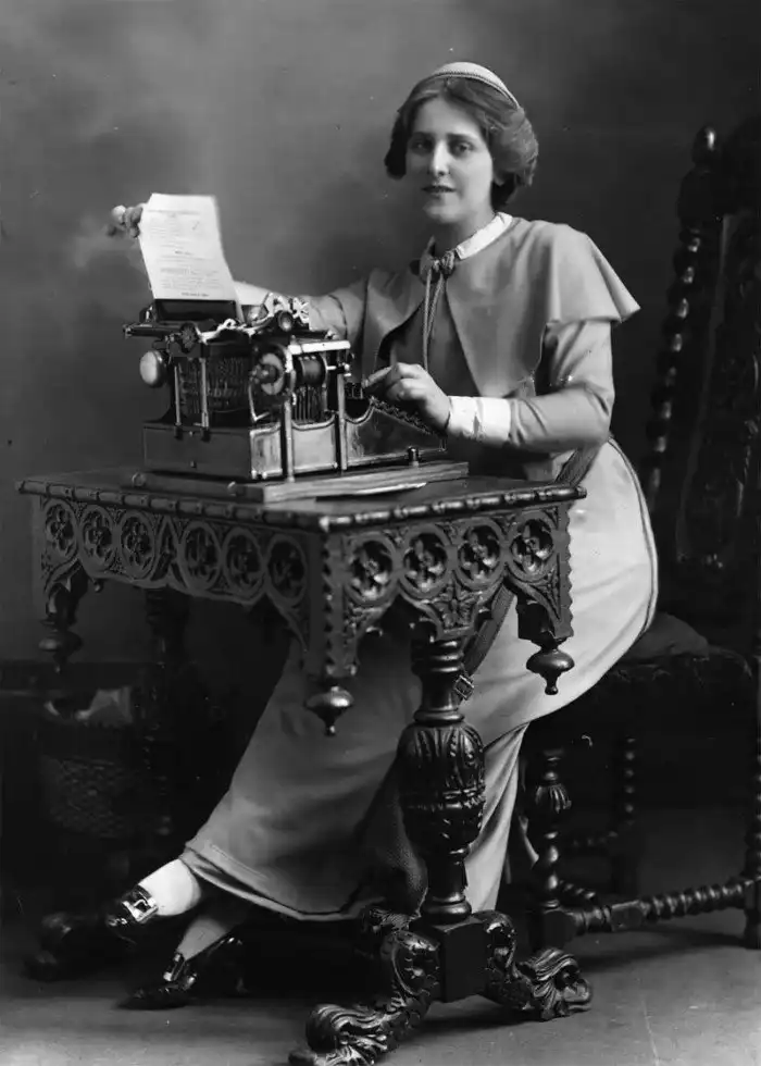 Берди Рив, 16-летняя рекордсменка по скорости печати. 1923 год.